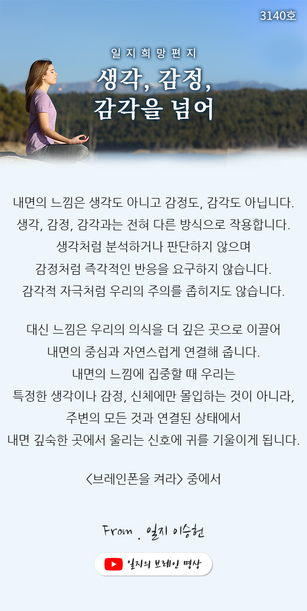 내면의 느낌은 생각도 아니고 감정도, 감각도 아닙니다.